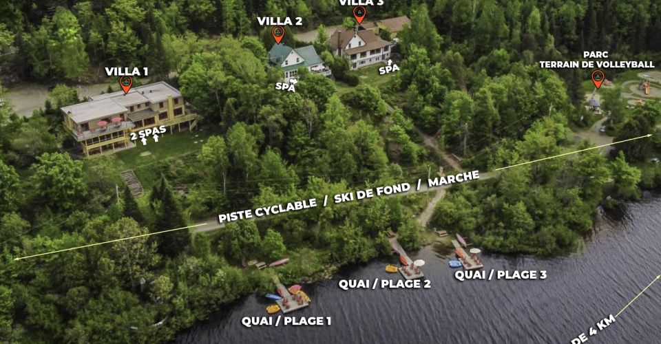 Les Villas de Chalets WOW sont situées à seulement 55 minutes de Montréal, en bordure du lac St-François-Xavier à Montfort, dans la municipalité de Wentworth-Nord. L’accès se fait par les charmants villages de Saint-Sauveur et Morin-Heights, à respectivement 20 et 10 minutes de Montfort. Le site est niché au pied du Corridor Aérobique, une ancienne voie ferrée du CN convertie en piste cyclable de 55 km reliant Morin-Heights à Saint-Rémi-d’Amherst, longeant le lac sur plus de deux kilomètres.